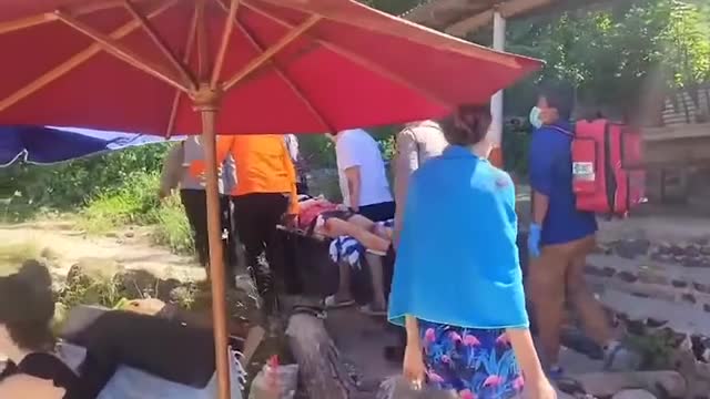 Alena Andreeva, 25, ventured into the shallows to take photos of herself at the idyllic Bias Tugel Beach on the popular holiday island in Indonesia. 2025-04-14 09:05:20
