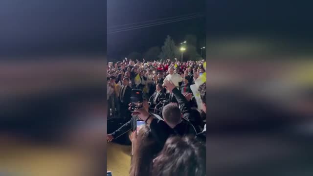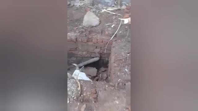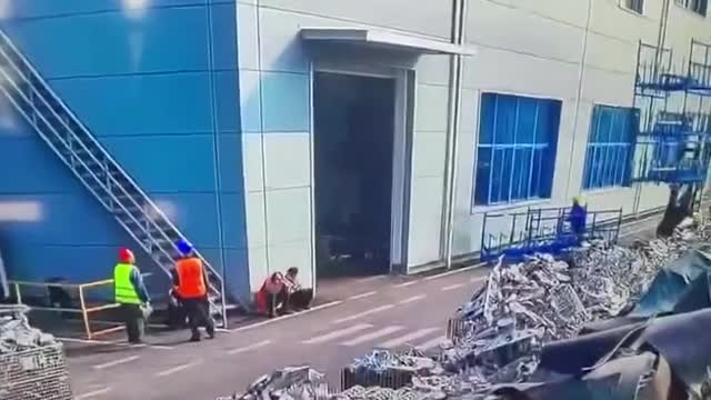 CCTV footage shows two labourers sitting by the side of the motorway when the stacked blue frames collapsed onto them in Chongqing, China. 2025-12-03 21:57:41