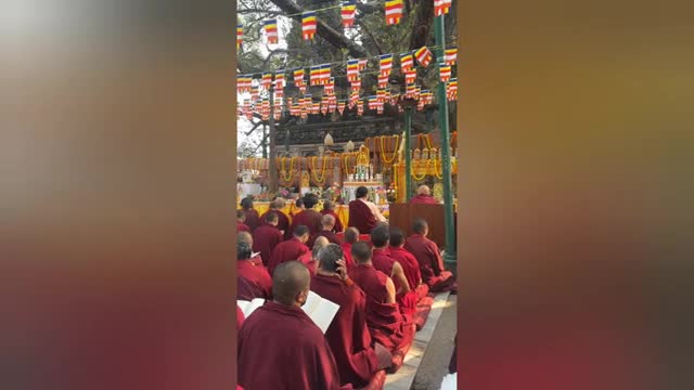 Footage shows worshippers assembling with pilgrims at the sacred Mahabodhi Temple in Bodh Gaya, Bihar, on November 18 for the 8th Dzongsar Monlam Chenmo. 2025-12-03 17:28:52