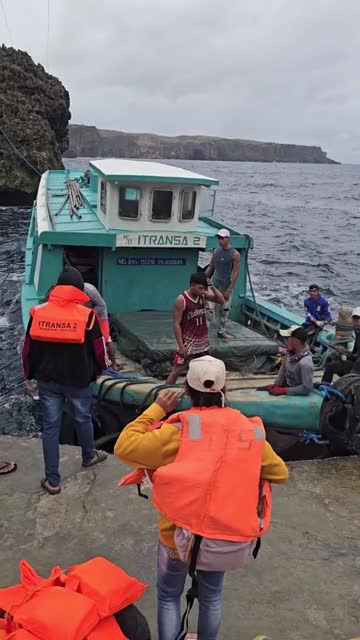 Footage captured by Raul Celestial shows men aboard the wooden motorboat Itransa 2 catching sealed white buckets during rough conditions at Itbayat Island, Batanes, in the Philippines. 2025-12-03 22:00:24