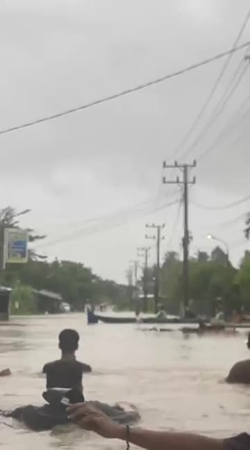 The tiny black pup became isolated with its mum and siblings when Typhoon Koto triggered heavy flooding in Misamis Occidental, the Philippines. 2025-12-03 21:58:45