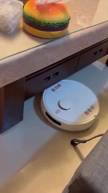 Footage shows the white robotic cleaner moving across the floor when it approached Nini, the grey feline, who was lounging at the doorway with its green spherical toy in Taipei, Taiwan. 2025-11-19 21:28:44