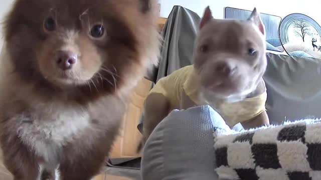 Footage shows the pair of chocolate brown and white pooches climbing all over the two-year-old kid Hoshi in Khon Kaen, Thailand on February 19. 2025-03-10 22:35:50