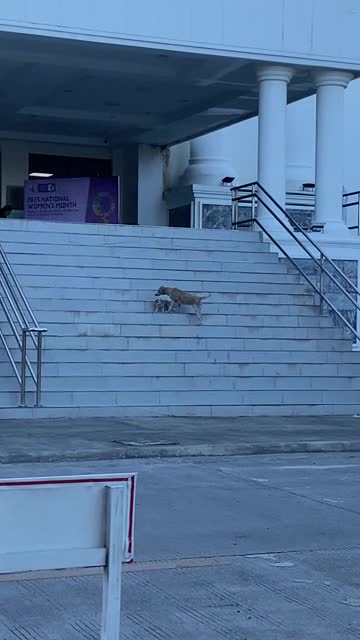 The stray pooch patiently waited for the tiny puppy to follow her before leading the way across the street in Tagbilaran City, the Philippines on February 4. 2025-03-10 14:15:00