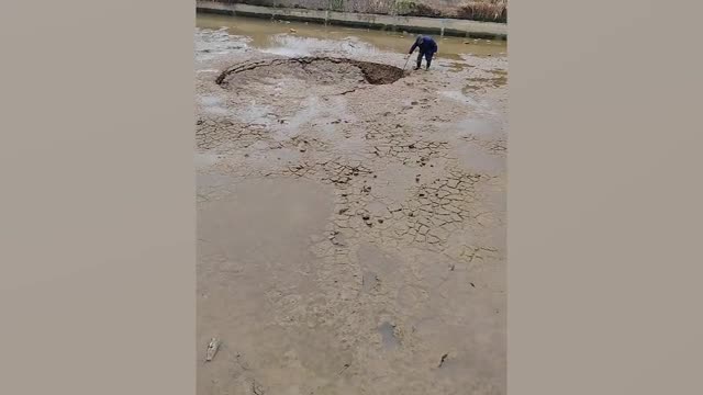 Astonished locals reportedly watched as more than 500 fish were sucked into the hole along with the pond's water in Sangzi, Hunan, on March 3. 2025-03-10 20:40:15