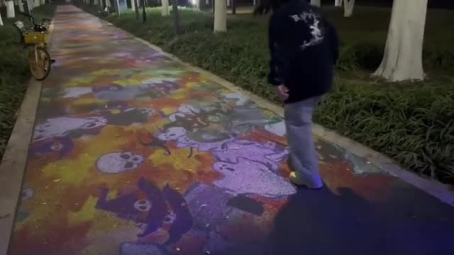 The local playfully engaged with the AI-driven motion-tracking art pathway while strolling through the streets near Tianran Tower in Yichang, Hubei, on November 29. 2025-03-10 20:40:40