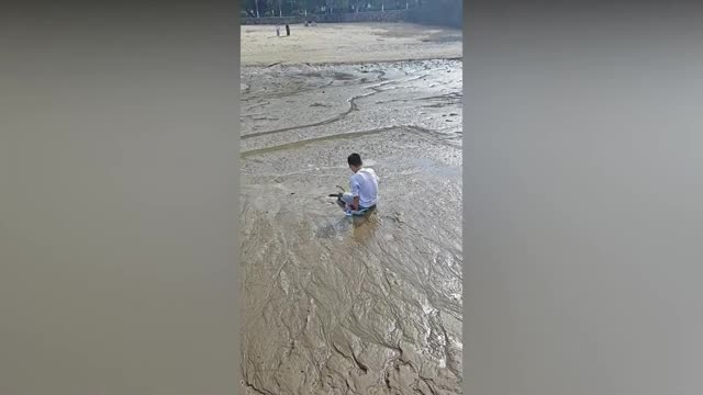 Footage shows the calm youngster lying on the boggy ground with his legs trapped inside at Gulangyu Island in Fujian, China, on February 1. 2025-03-09 08:56:08
