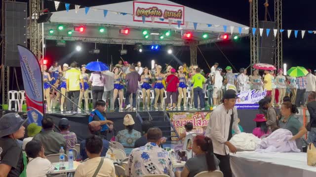 Footage shows the elderly men facing the girls wearing shiny blue skimpy clothes and gyrating with them in Cha-am district, Thailand. 2025-05-13 20:16:14