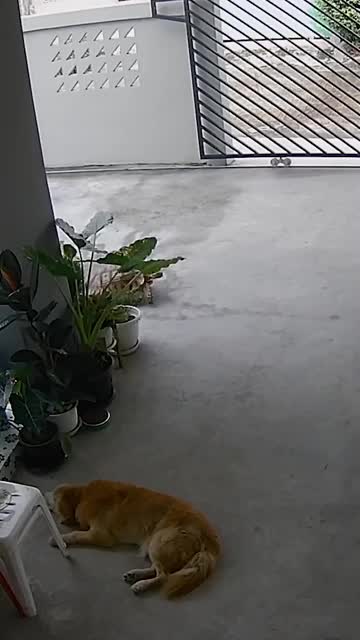 CCTV footage shows the eight-year-old African-spurred sulcata named Jeed crawling around the garage and annoying the pooch in Khon Kaen, Thailand on September 19. 2025-04-08 14:01:49