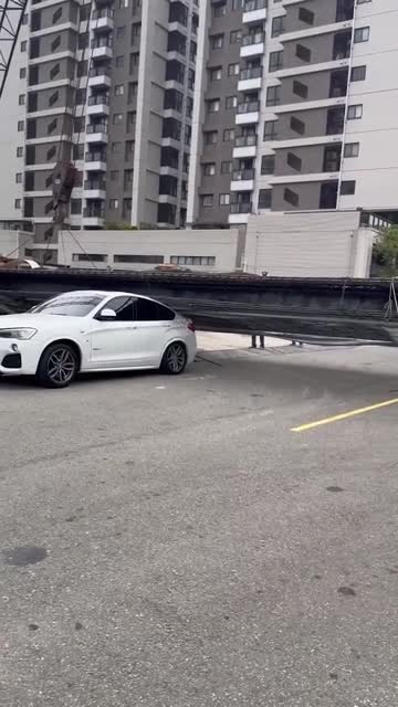 The parked white BMW X4 Coupe SUV was severely damaged on its rear end when metal bars fell onto it in New Taipei, Taiwan, on March 29. 2025-04-08 12:27:33
