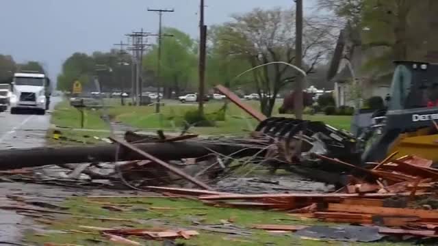 Footage shows Arkansas Department of Transportation (ARDOT) crews deploying heavy equipment for the cleanup operation on Thursday following the freak weather that struck the region on April 2.
