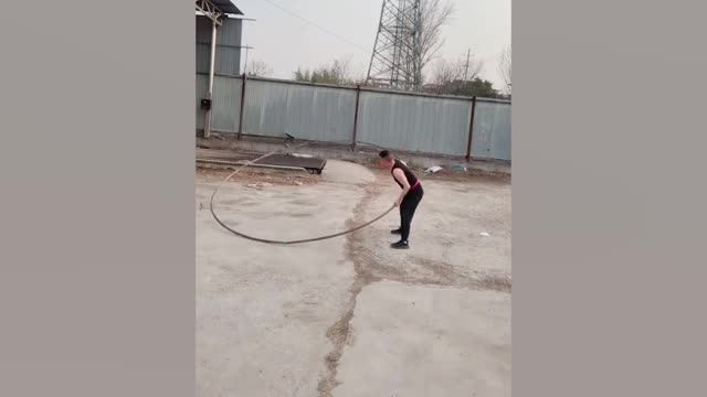 Song Hongqian, 52, demonstrated his incredible balancing skills as he spun a 40 lb (18.14 kg) metal ring around his waist while training for the Guinness World Records in Henan, China, on March 11.