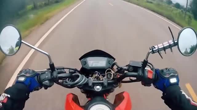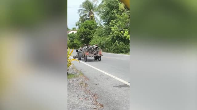 Footage shows the cart being pulled by a modified motorcycle making zig-zag motions as it rolls on the edge of the path in Nakhon Si Thammarat province on June 22. 2025-04-05 12:47:35