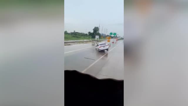 The kindhearted man helped the white sedan, which was stranded in the muddy waters in the middle of the road in Pathum Thani, Thailand, on June 27. 2025-04-05 12:47:41