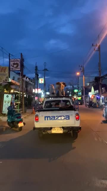 Local resident Arsa spotted two well-behaved pooches on top of the vehicle in the middle of the road in Kanchanaburi, Thailand, on July 17. 2025-04-05 12:48:02