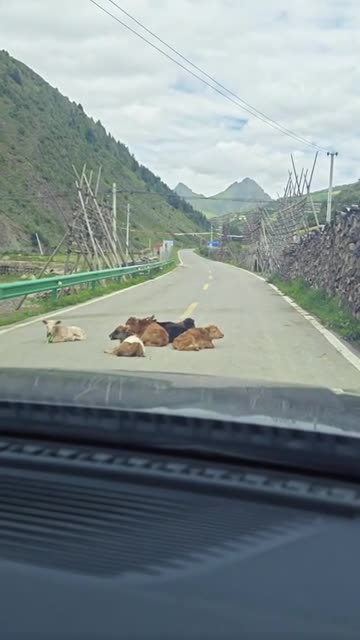 The man encountered six calves lying in the middle of the motorway, which prevented him from driving through in Sichuan, China, on August 10. 2025-04-05 11:04:10