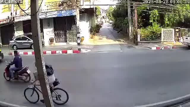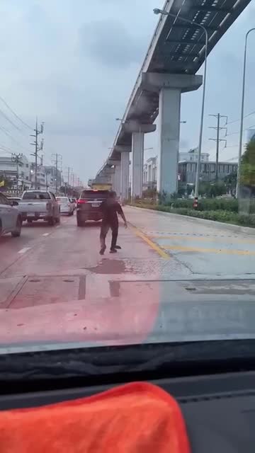 A passing driver spotted the motorist holding the vehicle in front of him while aboard another two-wheeler on the highway in Pathum Thani, Thailand, on October 23. 2025-04-05 10:52:47