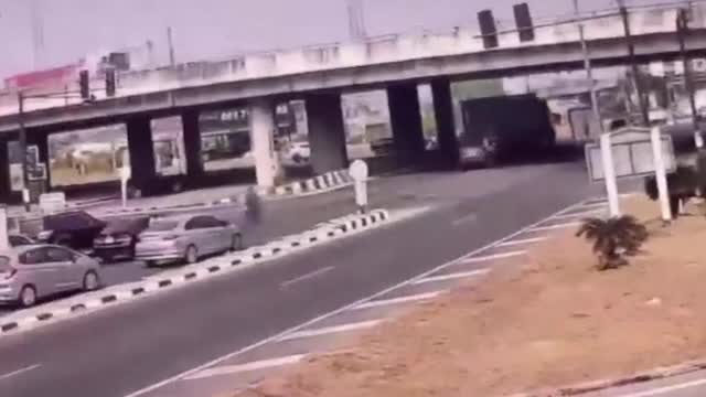 CCTV footage shows the 18-wheeler with a pink cargo container flipping over at the underpass in Chonburi province, on February 7. It toppled onto its side and smashed onto a concrete barrier, causing traffic congestion at the Chonburi Bypass Road.