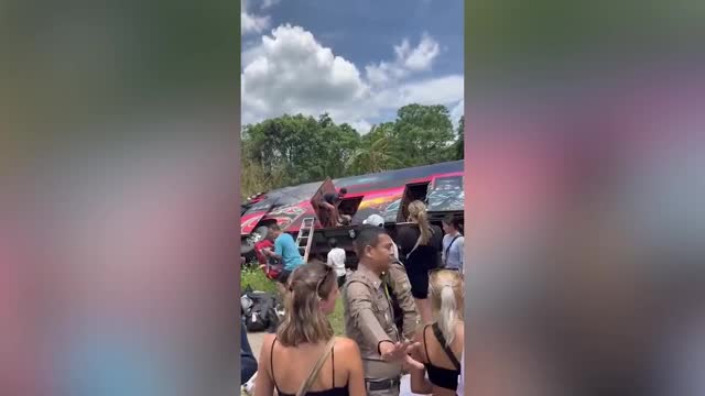 The holidaymakers were travelling to the island of Koh Samui where the popular TV series 'The White Lotus' was filmed, when the bus lost control this afternoon. 2025-04-04 18:44:54