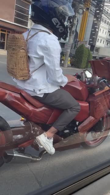 The modified vehicle with fairings sculpted from mahogany tree was stuck in traffic when a motorist spotted it in Pangasinan, the Philippines on February 16. 2025-02-28 13:36:46