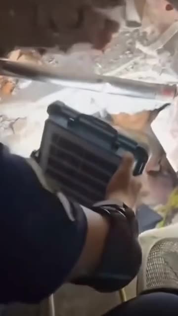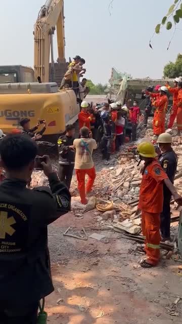 Footage shows the workers making contact with the resident stuck in the debris in Sagaing on April 2. Incredibly, she had been trapped for five nights without food or water following the devastating quake on March 28. 2025-04-03 12:44:52