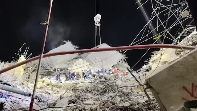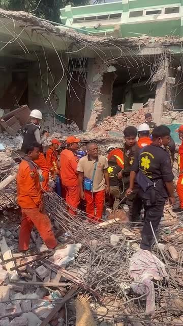 Firefighters and volunteers cut through the remains of the Chinese-built 33-storey high State Audit Office after reportedly hearing voices from under the wreckage, at around 11:30 pm on April 2. 2025-04-03 12:36:17