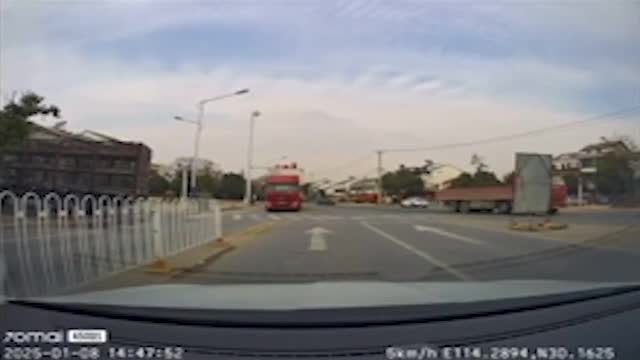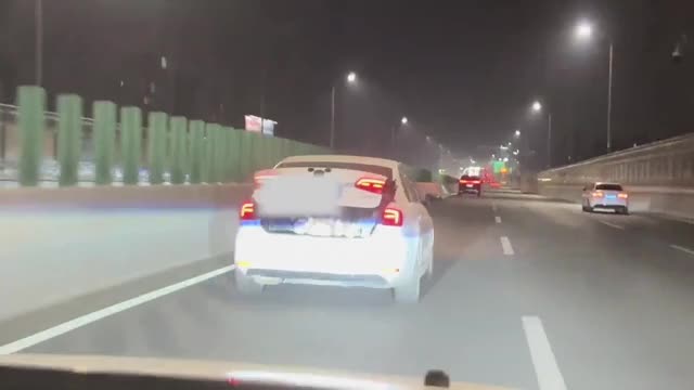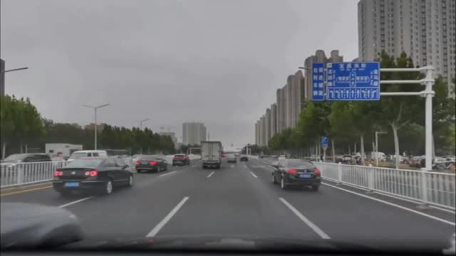 Dashcam footage captured by Mr Zhang shows a grey hatchback veering into the left lane at an extremely high speed, narrowly avoiding other passing cars in Weifang, Shandong, on September 30.