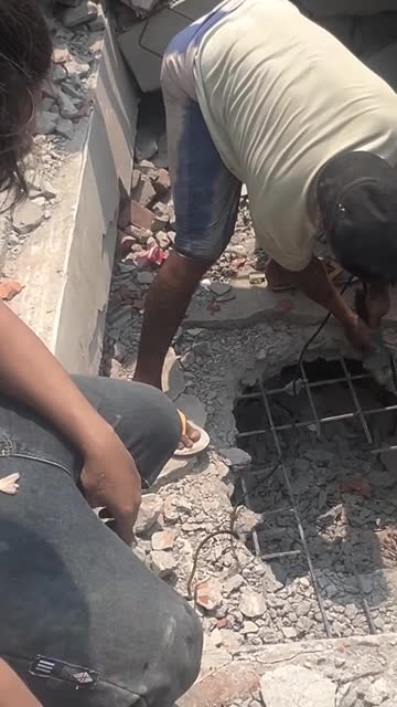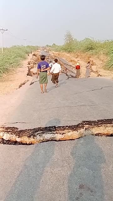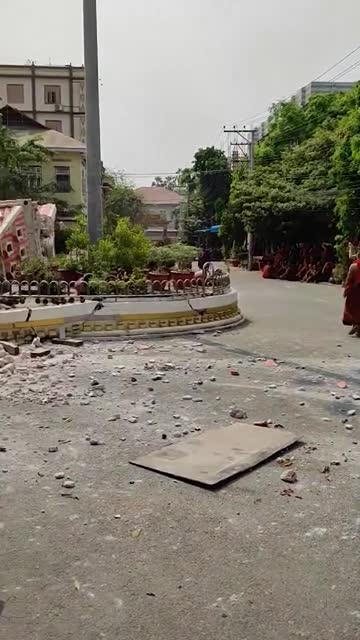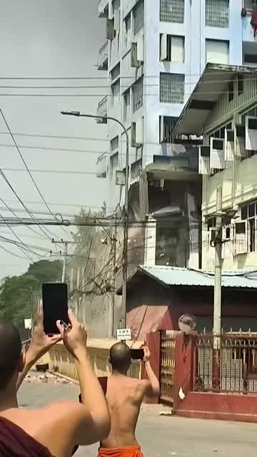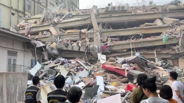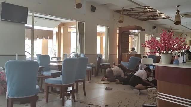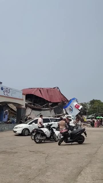 CCTV footage shows the shelves tipping over as the tremors hit the shop in Mandalay on March 28. A store counter slid across the floor, while a terrified clerk desperately crouched for cover as boxes fell onto her.
