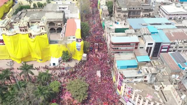 Aerial footage shows a line of worshippers attending the Rang Panchami celebrations in Indore, Madhya Pradesh, on Wednesday, March 19. 2025-03-22 12:39:44