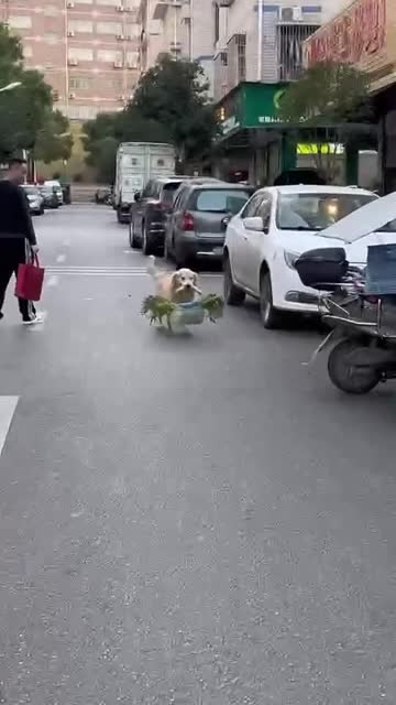 Footage shows the canine helper walking across the street with the container of fresh produce in its mouth, in Changsha City, Hunan province, on November 28. 2025-03-22 13:09:45