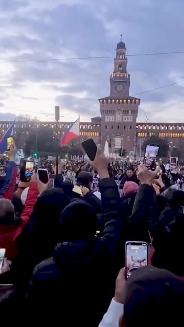 Video shows the crowd singing the Filipino song 'Ipaglalaban Ko' ('I will fight') at the Largo Cairoli city square in Milan, on March 16. 2025-03-22 12:47:43