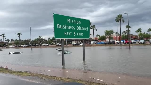 Storm leaves cars submerged in Alamo-Donna, Texas