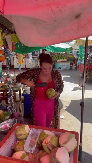 Holidaymakers were entertained by the seller's playful antics as she prepared drinks near the River Kwai in Kanchanaburi on March 15. 2025-04-01 20:30:25