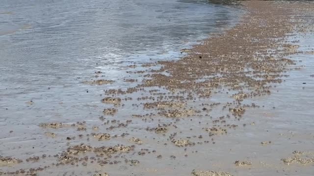 Footage shows the tiny crustaceans scuttling across the sand in every direction along the coast of Krabi province in southern Thailand. 2025-04-01 20:48:41
