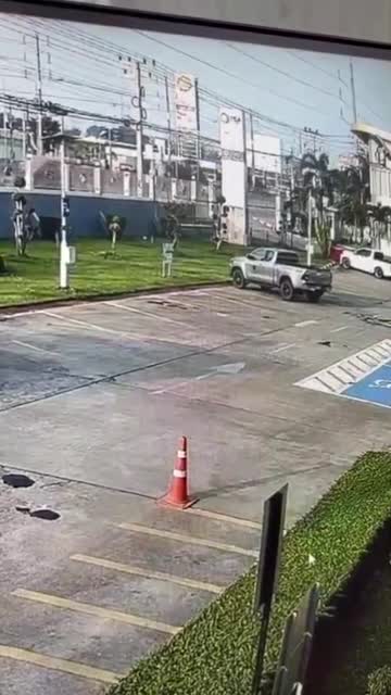 The white six-wheeler lorry allegedly experienced a tyre burst, causing it to slam into the barricade of the Provincial Electricity Authority (PEA) Region 3 office in Nakhon Ratchasima, Thailand. 2025-04-02 12:06:11