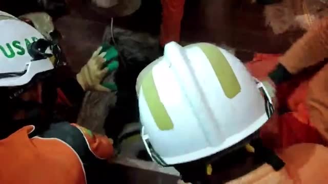 Footage shows the rescue officers hoisting the injured man out of a hole in the crumbled Hotel Aye Chan Thar in Naypyidaw, in the early hours of April 2. 2025-04-02 12:01:11