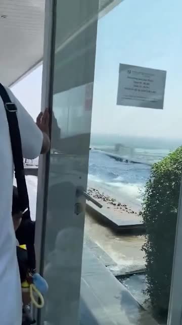 Footage shows the swimming pool spilling its water over the side of the tower block as tremors hit Bangkok, Thailand, on Friday afternoon. 2025-03-28 23:43:51