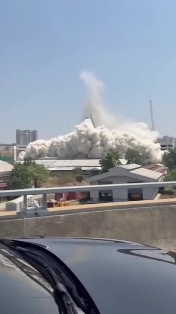 Footage shows a cloud of dust from the carnage shrouding the construction site where the structure crumbled near the Chatuchak Weeding Market in Bangkok, Thailand. 2025-03-28 17:13:20