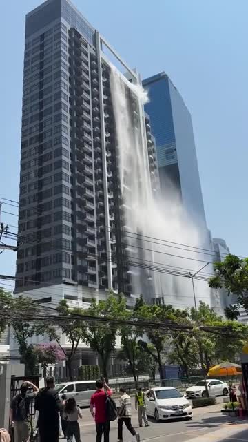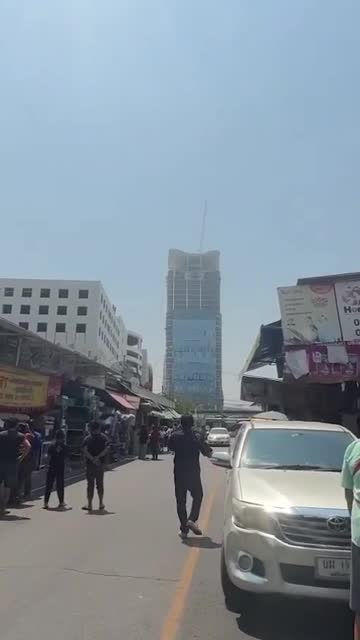 Video shows terrified onlookers yelling as the structure in the Chatuchak district of the capital gave way at around 1:20 pm today. 2025-03-28 16:22:44