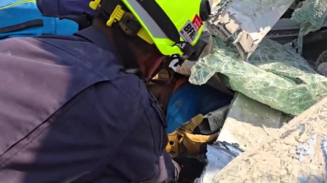 Video shows firemen pulling the builder out from the rubble of the collapsed apartment block that was being built in the capital city. 2025-03-28 16:27:52