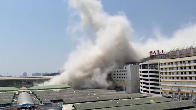 The structure in the Chatuchak district of the capital gave way, sending workers running for cover as debris collapsed around them. 2025-03-28 17:18:26