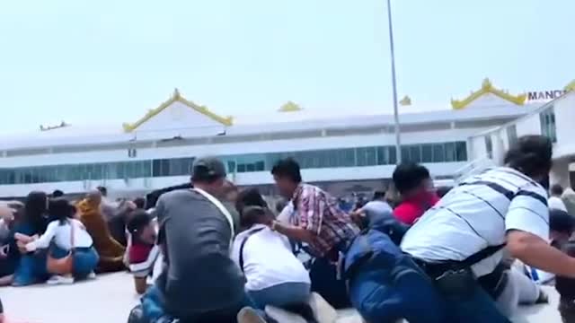 Footage shows the panicked fliers after they evacuated planes and the Mandalay International Airport building, which suffered significant damage from the quake. 2025-03-28 16:42:02