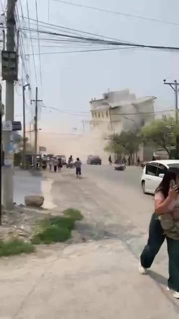 Footage shows the devastation in Mandalay as debris and dust filled the roads. Motorcycle riders were flung to the ground and a number of cars crashed. 2025-03-28 17:03:35