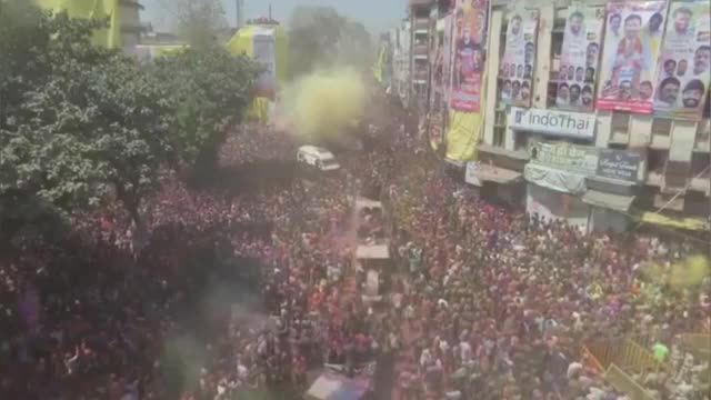 Dramatic footage shows worshippers in a procession clearing the way for the emergency vehicle as it passes through the same route in Indore, Madhya Pradesh. The locals were attending the Rang Panchami celebrations on Wednesday, March 19.