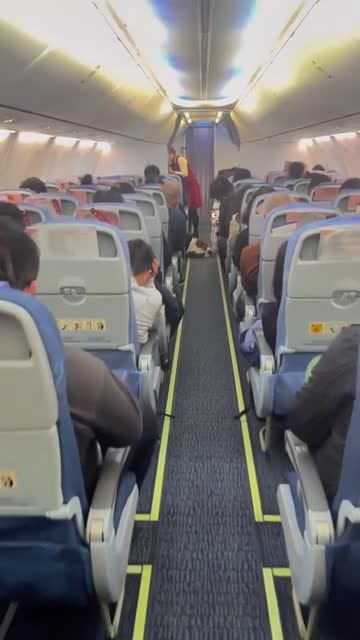 A family aboard Air China brought Xiong Er, their four-year-old trained service dog, on a holiday trip to Harbin, Heilongjiang, on March 18. 2025-03-20 15:25:40