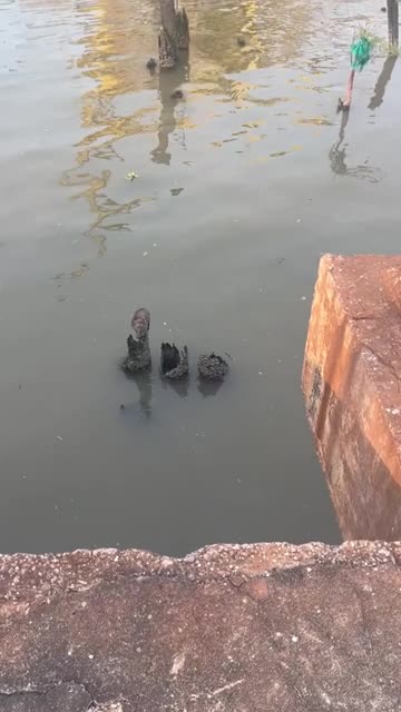 Footage shows the grey tabby clinging to the top of the slippery pole and meowing softly when locals noticed it in Samut Prakan, Thailand. 2025-03-20 15:23:51