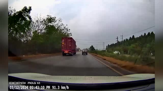The vehicle was making an LPG delivery to Samut Prakan province when its rear brake reportedly overheated on the afternoon of March 16. The friction and heat set a rear wheel ablaze on the road. 2025-03-19 09:07:48