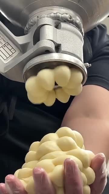 Using a machine to shape the sweet treats uniformly, the worker carefully lowered the dough into hot oil for deep frying. Once cooked, he neatly arranged the donuts to ensure their shape and consistency.