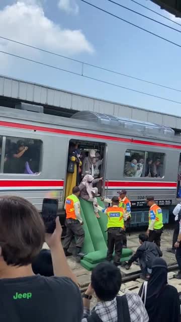 Commuters were forced to change trains when a section of railway track leading to Cilejit Station was damaged in Tangerang Regency, Indonesia, on October 17. 2025-10-29 14:11:29