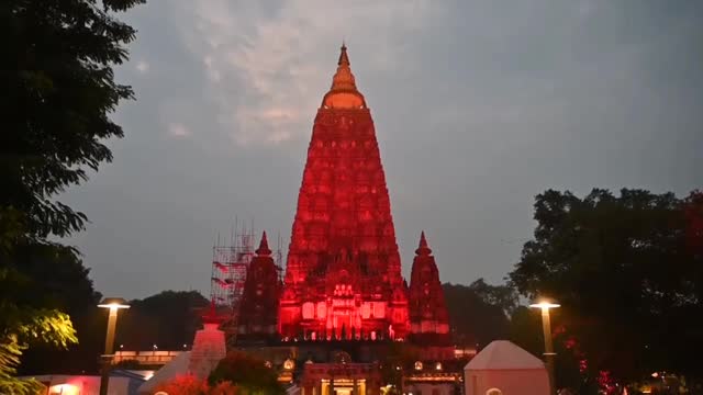 Footage shows the sacred Mahabodhi Temple, a UNESCO World Heritage Site, glowing crimson on October 26 to mark the occasion in Bodh Gaya. 2025-10-29 13:27:15